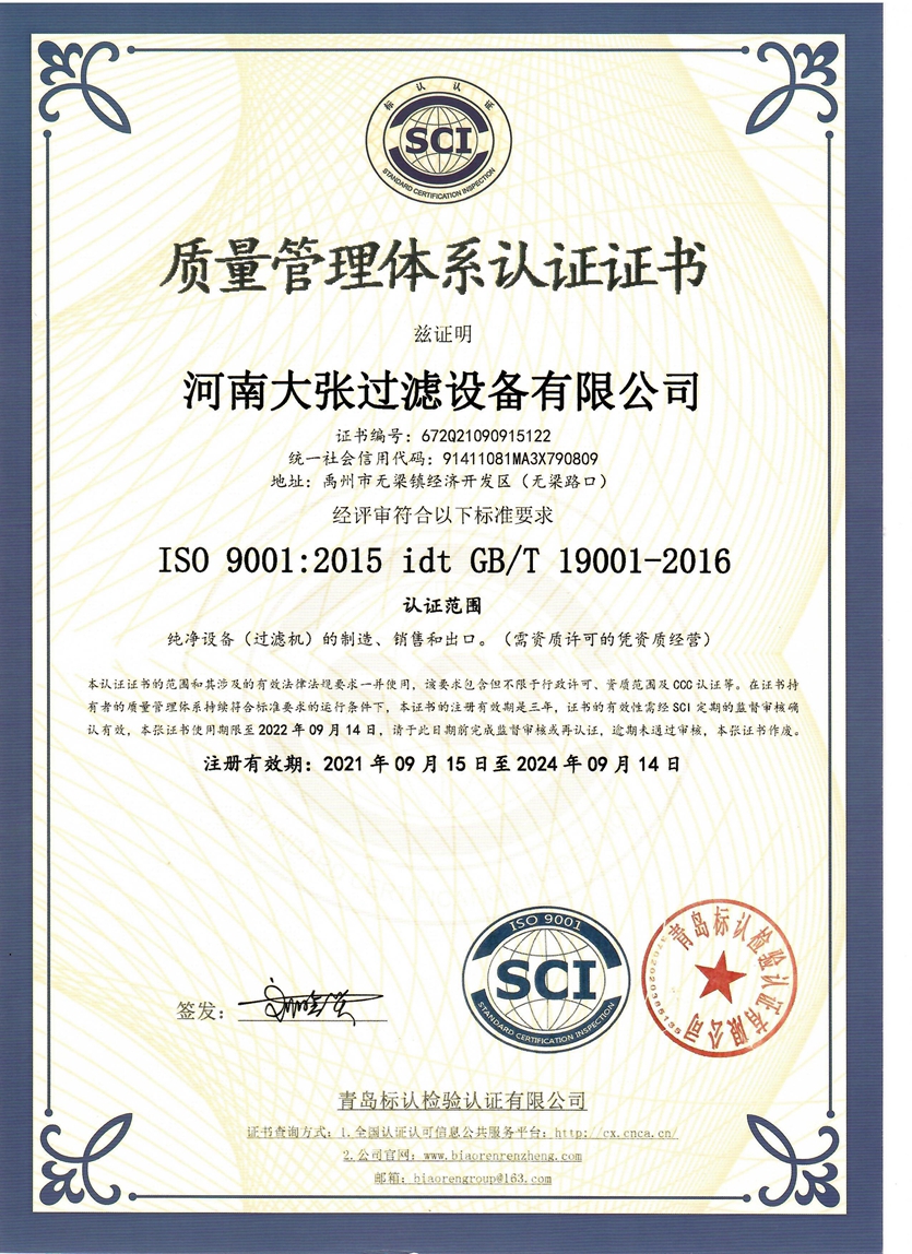您好!歡迎訪問河南大張過濾設備有限公司官方網站!