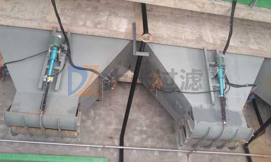 壓濾機(jī)過濾完成后,可將濾餅卸落至配套的儲泥斗,便于集中裝運(yùn)。泥斗的大小可以根據(jù)壓濾機(jī)型號和客戶要求定做,打開方式分為電動(dòng)和氣動(dòng)兩種。